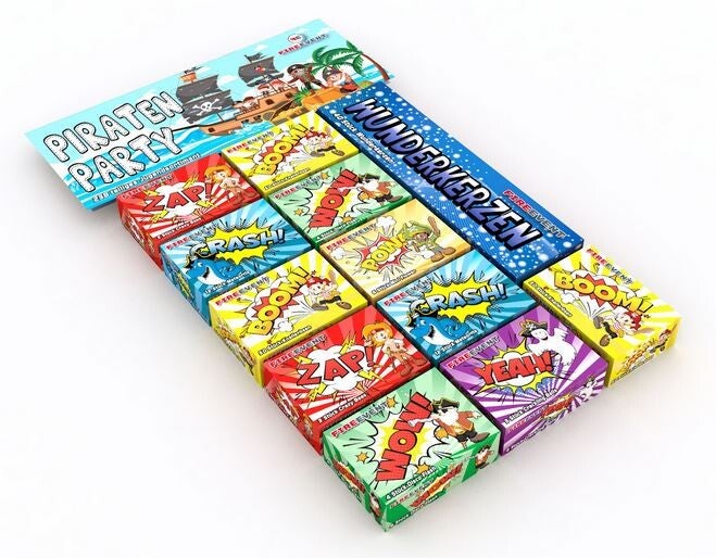 Kat. F1 Feuerwerk - Jugendsortiment als 12er Sortiment mit insgesamt 235 Effekten: 150 Stk. Knallerbsen, 6 Stk, Verückte Bienen, 24 Stk. Blinker Meteoriten, 6 Stk. Mini Flower, 3 Stk. Crackling Balls, 8 Stk. Disco Flash, 40 Stk Wunderkerzen